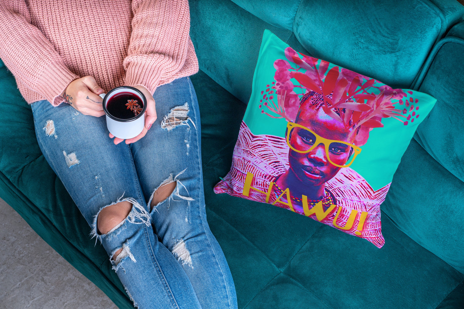 Our cushion cover is high-quality 100% cotton twill fabric with a digital print on the front side of the cushion. The reverse side is white. Cushion cover only. You can use any 50cm cushion inner.